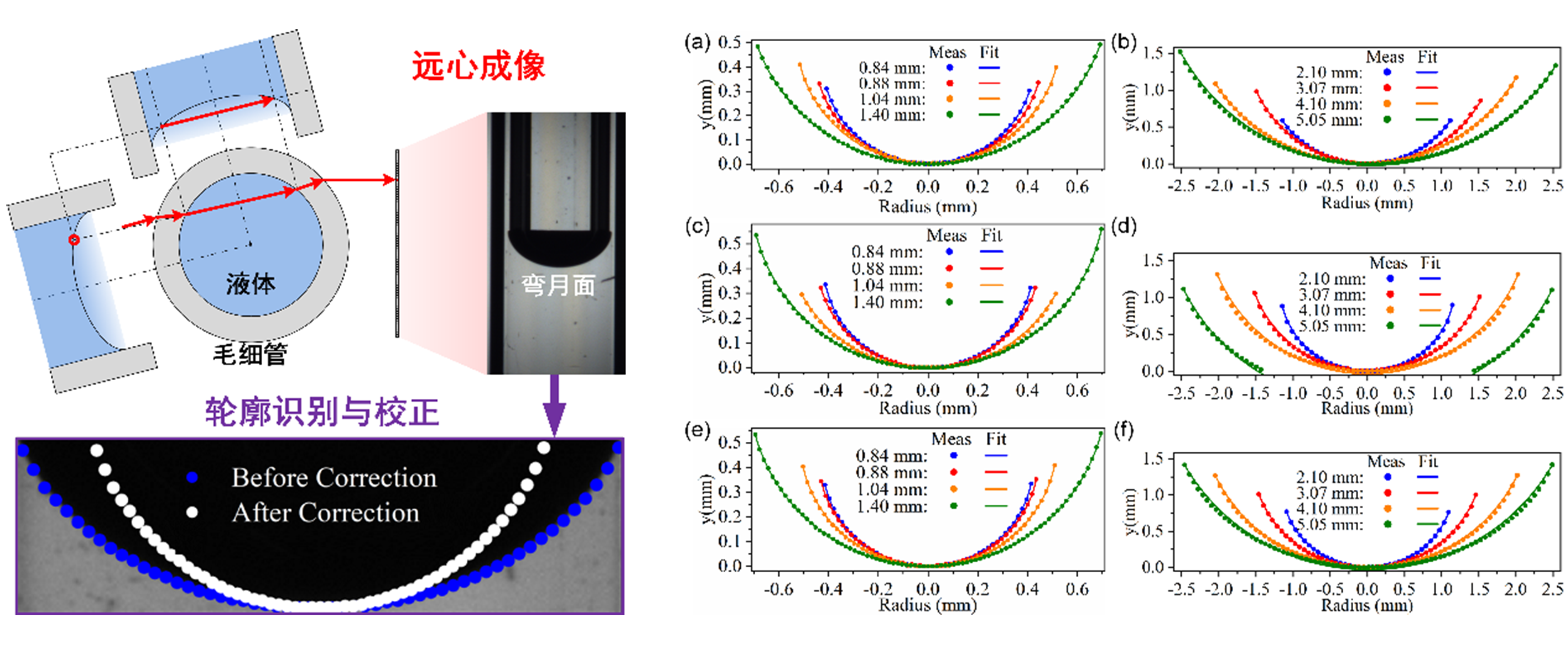 该研究突破了毛细管弯月面精确测量的关键技术瓶颈,为毛细作用的力学建模提供了可靠的数据支撑,也为界面科学、材料学等领域的精密测量提供了新思路。后续,团队将基于该测量方法开展动态弯月面行为的相关研究,并系统构建静态与动态弯月面的力学模型,持续推动相关领域的理论创新与技术应用。